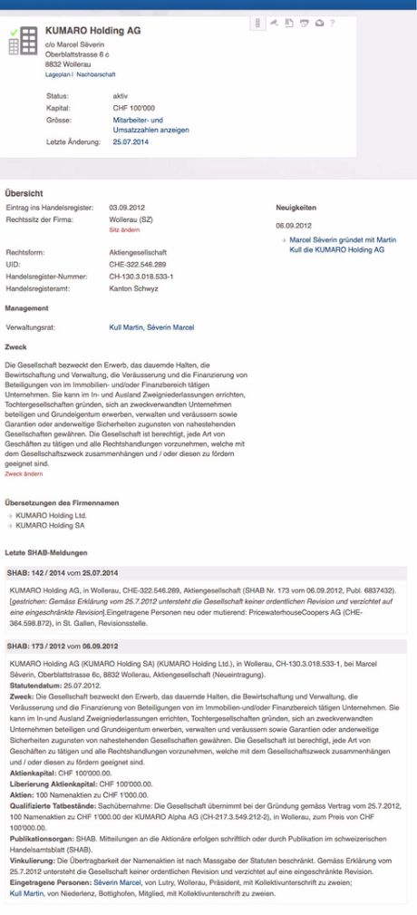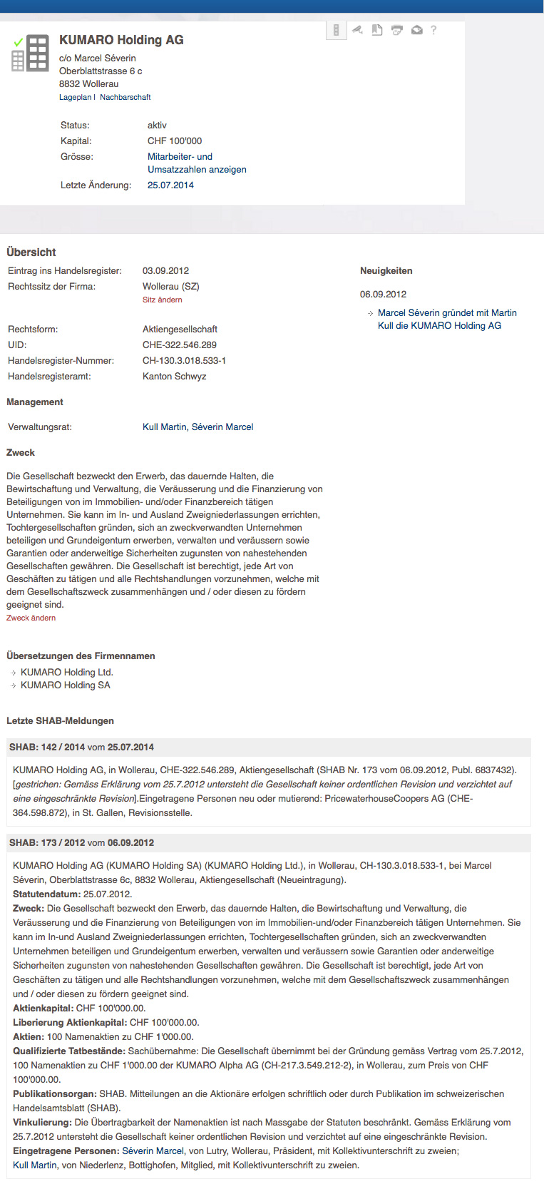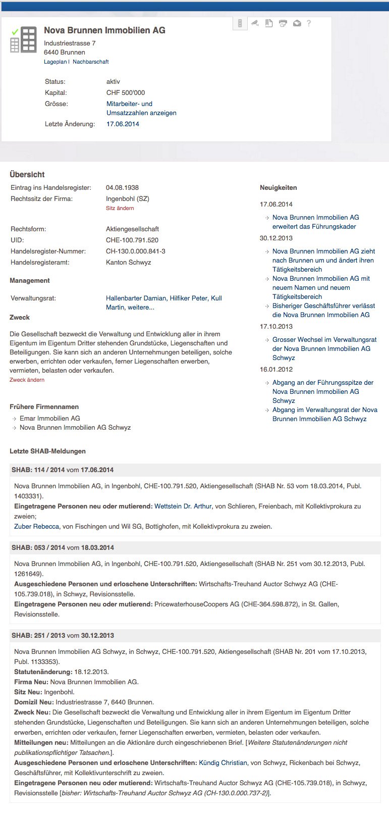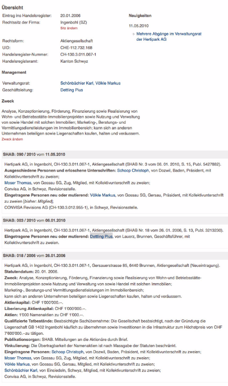 HERTIPARK AG - KUMARO AG - HRS Real Estate AG - Kantonalbank Schwyz - Nova Brunnen Immoblien AG - P. Detting, M. Kull, M. Séverin - viele mehr