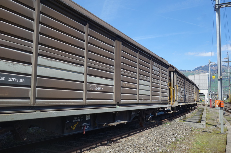 eine gebaute Tip-Top Visitenkarte am Gleis steht - AUFWERTUNG