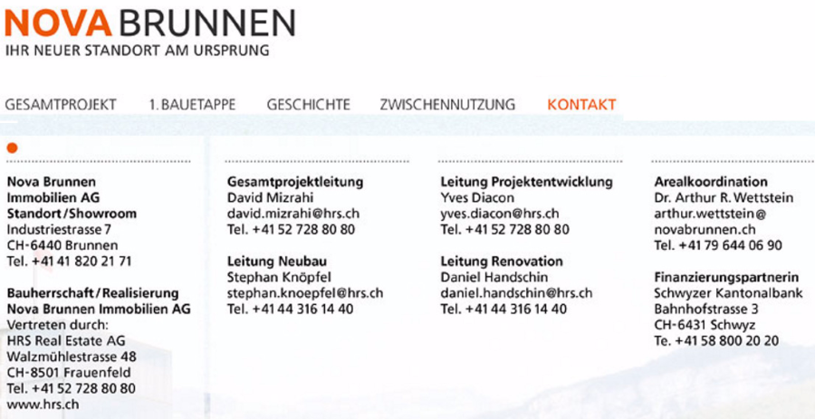 Herr Dr. Wettstein vertritt die Nova Brunnen Immobilien AG Brunnen von