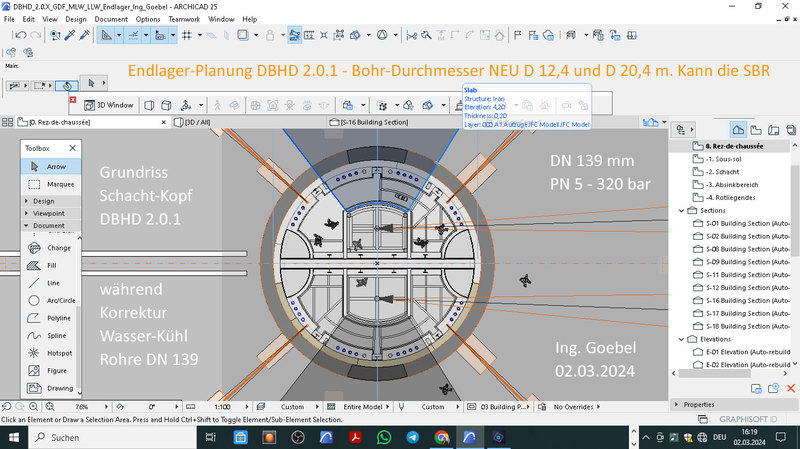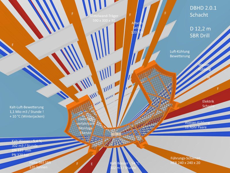 Die SBR Bohrtechnick wird mittlerweile Standart-Mässig angeboten für D = 12 Meter, - die aber durch den schon immer vorhandenen Teleskop-Arm mit Wühl-Schneid-Rad eben auch D = 20 Meter kann ! - Sogar 22 Meter wären möglich - falls das jemand will. - Die SBR Maschine kann mittlerweile also exakt was DBHD 2.0.0 braucht !!!