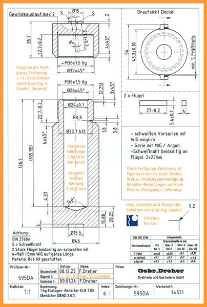 zylindrische Endlager Auslegung zu ZEICHNEN.