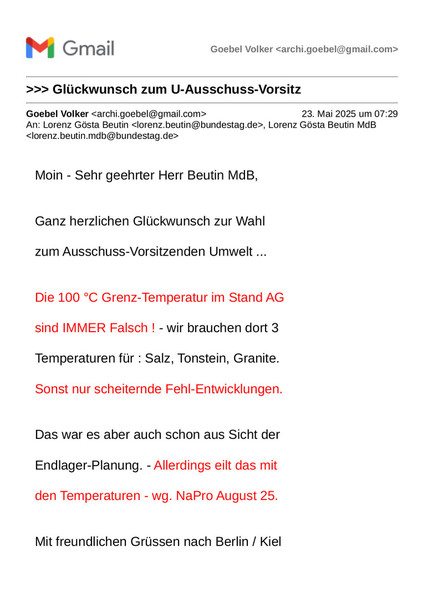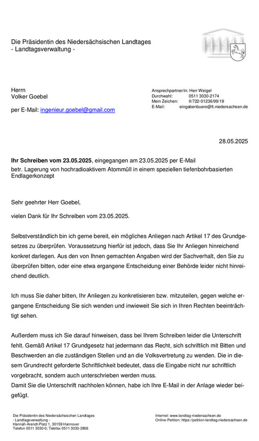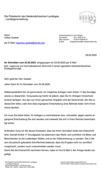 Sie erhalten auch noch einen richtigen Antwort-Brief - Endlager-Bedarfe BRD !