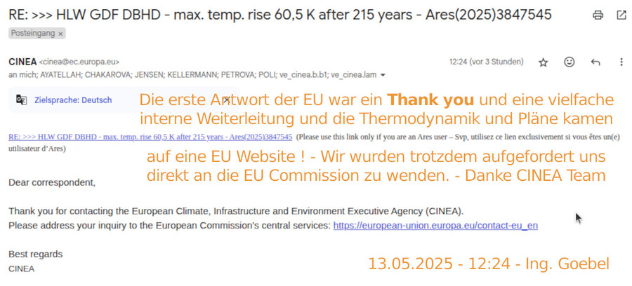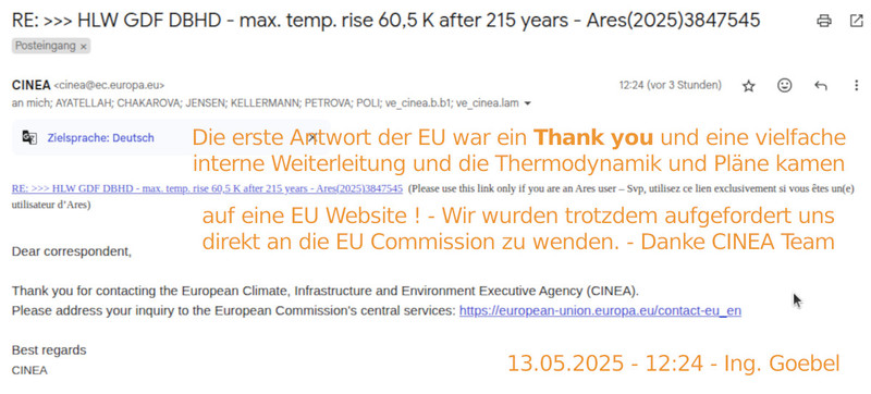 >>> mit dem max. Temperatur-Anstieg von + 60,5 K nach 215 Jahren ! aus nuklearer Nachzerfalls-Wärme, ist das DBHD HLW Endlager weltweit sehr akzeptabel, und entspricht sogar Deutschen Gesetzen. - MfG Ing. Goebel